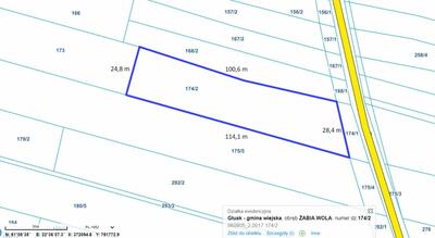 Działka usługowo-produkcyjna nr 174/2 o pow. 2537m2 Żabia Wola gmina Glusk. O nieruchomości: Szerokość działki: 28,4 ...